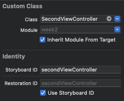 먼저 SecondViewController에 storyboard id를 지어주고, use storyboard id 체크
