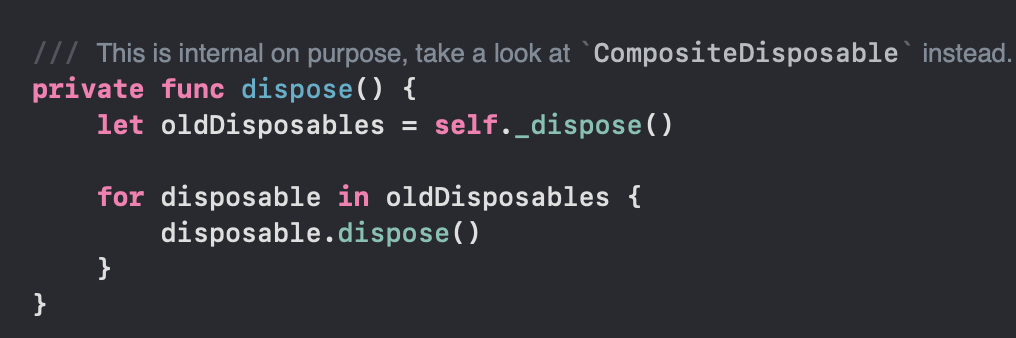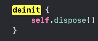 - 그리고 해당 DisposeBag은, 객체가 deinit 될때 알아서 자기 자신 안에 들어있는 Disposable 객체들을 해지해준다.