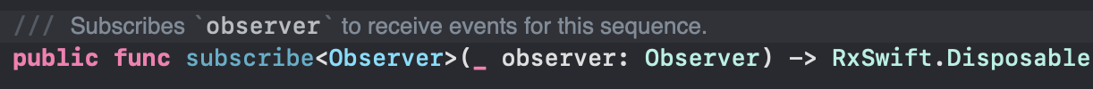 RxSwift에서, 옵저버는 subscribe를 통해 이벤트를 전달받아서 처리하게 되는데, subscribe는 이후에 Disposable 을 반환한다.