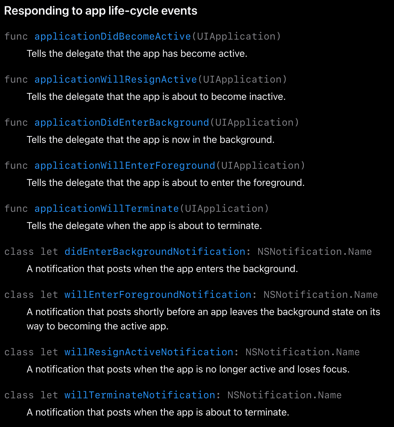 + 앱 생명주기 관련해서 기타 notification도 아래와 같이 있으니, 필요에 따라서 사용하면 좋을듯 하다.