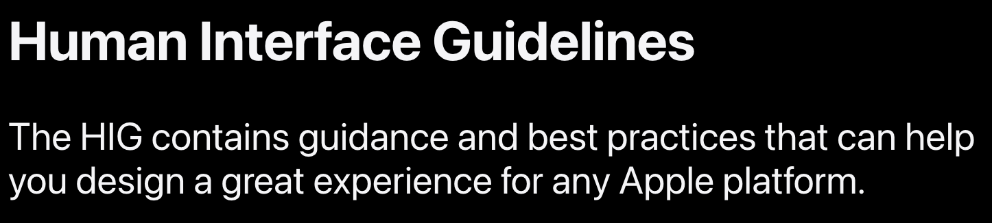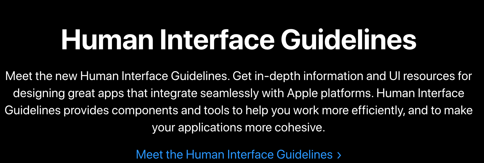 The HIG contains guidance and best practices that can help you design a great experience for any Apple platform.