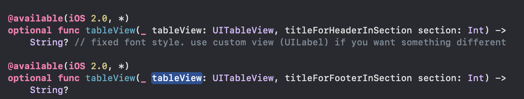 - 테이블뷰에 추가적인 정보를 나타내기 위해 헤더 혹은 푸터를 붙일 수 있다.