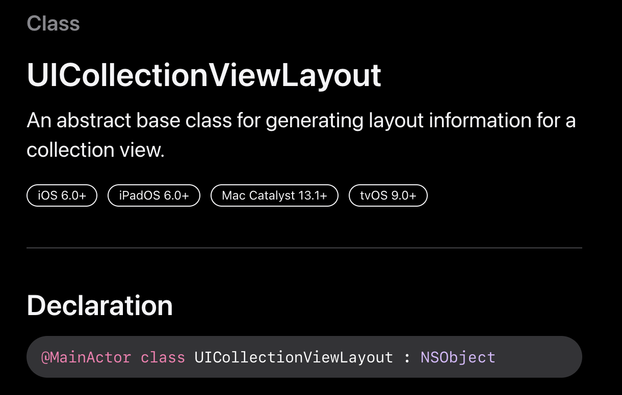 UICollectionViewLayout은 추상클래스이고, 이를 구체적으로 구현한 클래스가 바로 UICollectionViewFlowLayout이다.