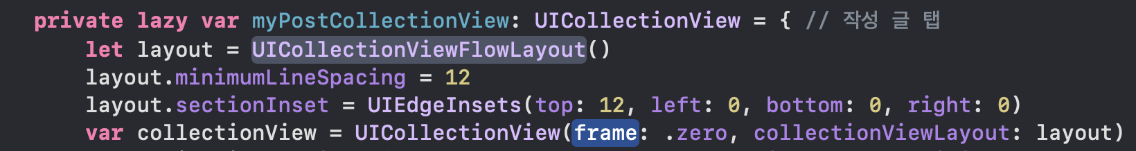 collectionView는 반드시 초기화할 때 CollectionViewLayout을 매개변수로 넣어서 지정해주어야 한다!