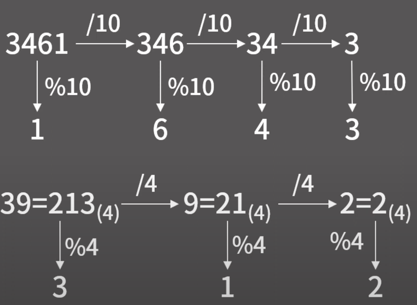 - 10진수를 구할 때 10의 나머지를 구한 다음 10으로 나누듯이, 4진수도 마찬가지로 4의 나머지를 구한 다음 4로 나누는 방식으로 4진수를 구할 수 있다.