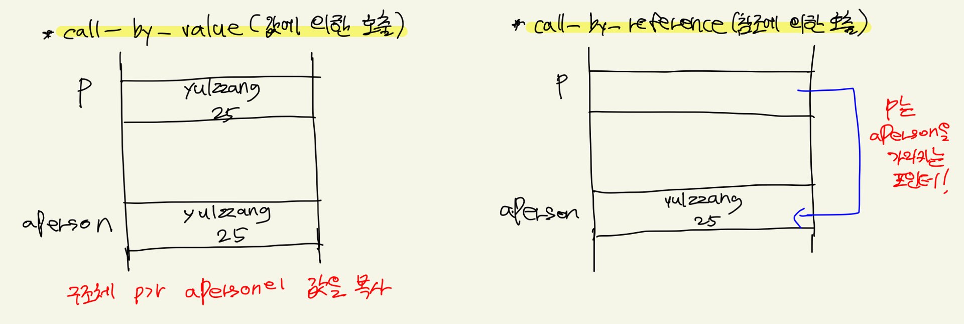 void printPerson2(Person *p) //참조에 의한 호출(call-by-reference)