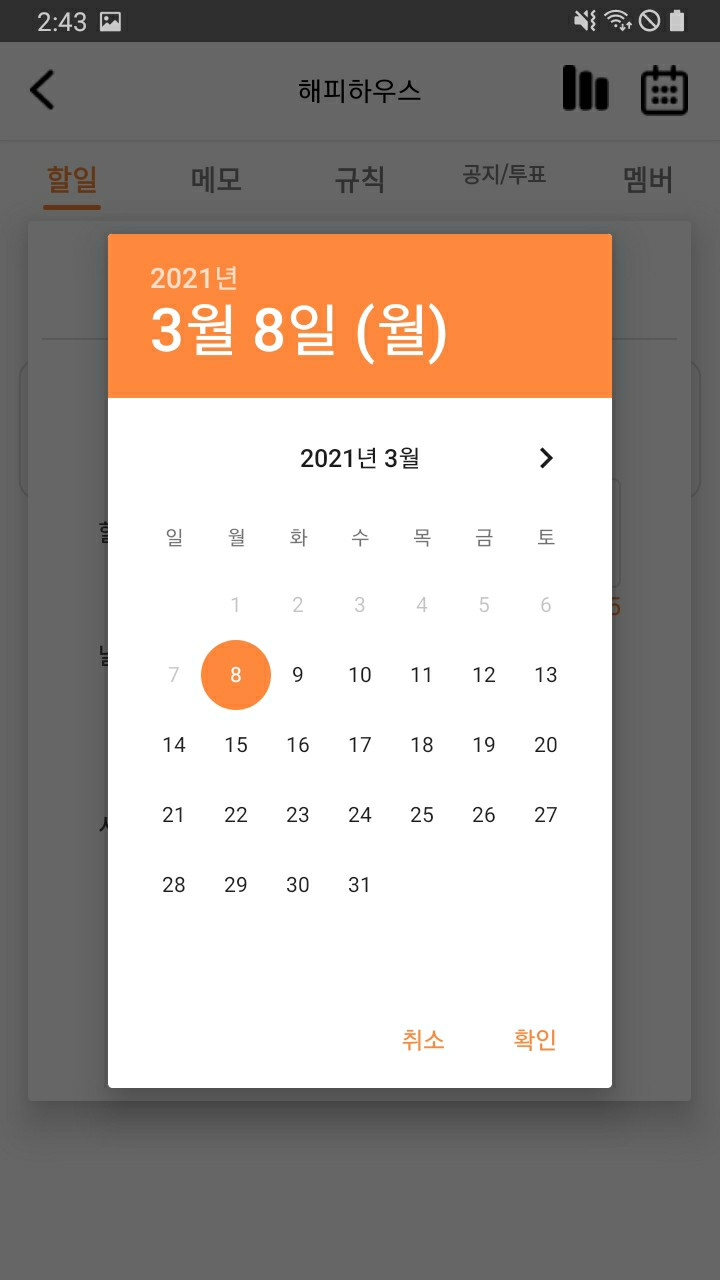 - 선택한 날짜와 요일이 뜨도록