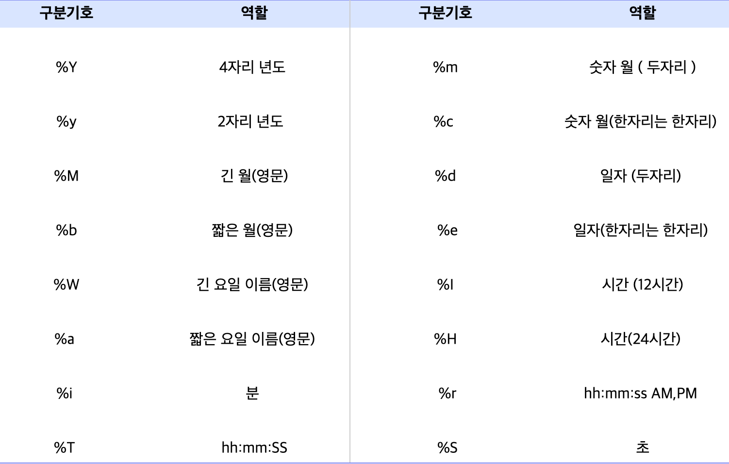 YEAR 함수 YEAR 함수는 범위 1000~9999까지에 대한 년을 반환합니다. #ex.1) mysql> SELECT YEAR('2011-10-09 07:18:59'); -> 2011 MONTH 함수 MONTH 함수...